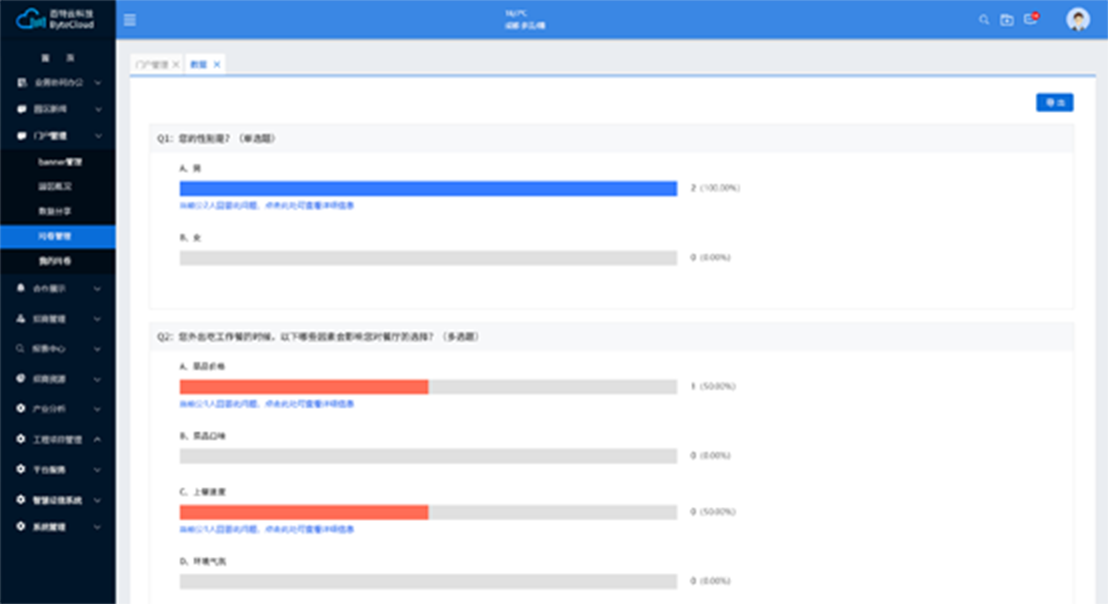 实现发布问卷调查以及投票,支持删除、启用、禁用、查看结果等功能,且能对统计后的结果进行导出查看