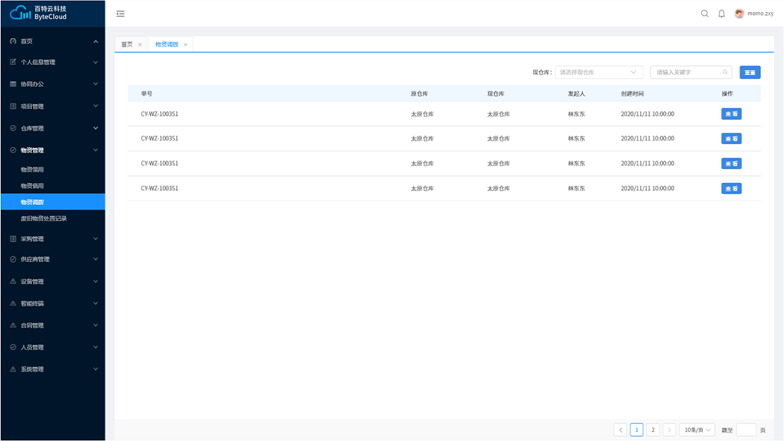 根据项目现场施工需求申请物资,库管员根据库存情况合理安排物资调拨