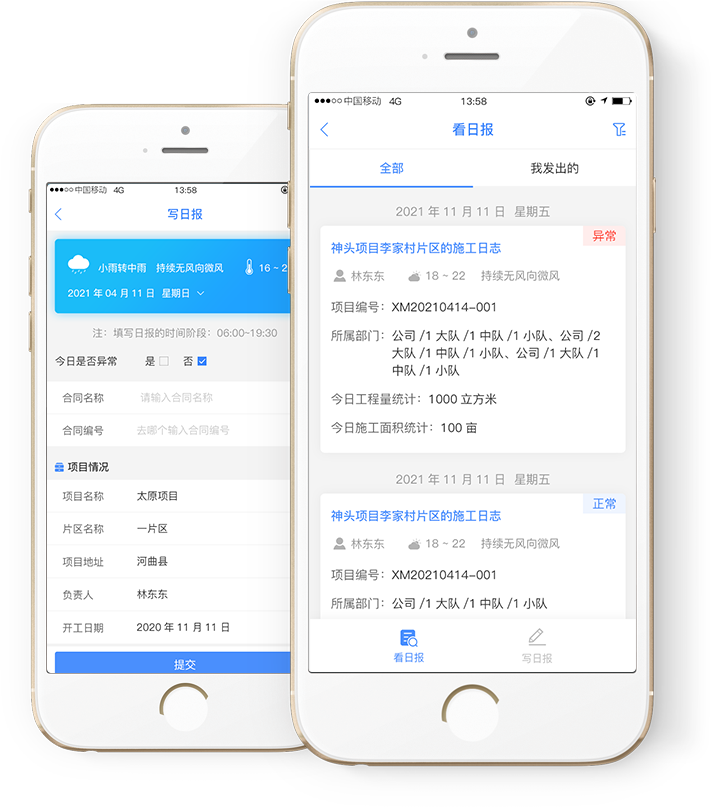 支持APP填报日报、周报、月报等,方便管理人员实时了解项目、片区的最新情况,合理做出相应的调整及安排